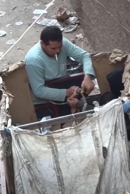 ووثق الفيديو قيام أحد الأشخاص من جامعي القمامة بقيامه بتقييد فتاة في العقد الثاني من العمر، يأمرها بالجلوس بمركبة التروسيكل، ثم يوثقها بالحبال بأحد أجزاء المركبة، وعقب ذلك يتركها ويتحرك إلى الجانب الآخر من الشارع.
