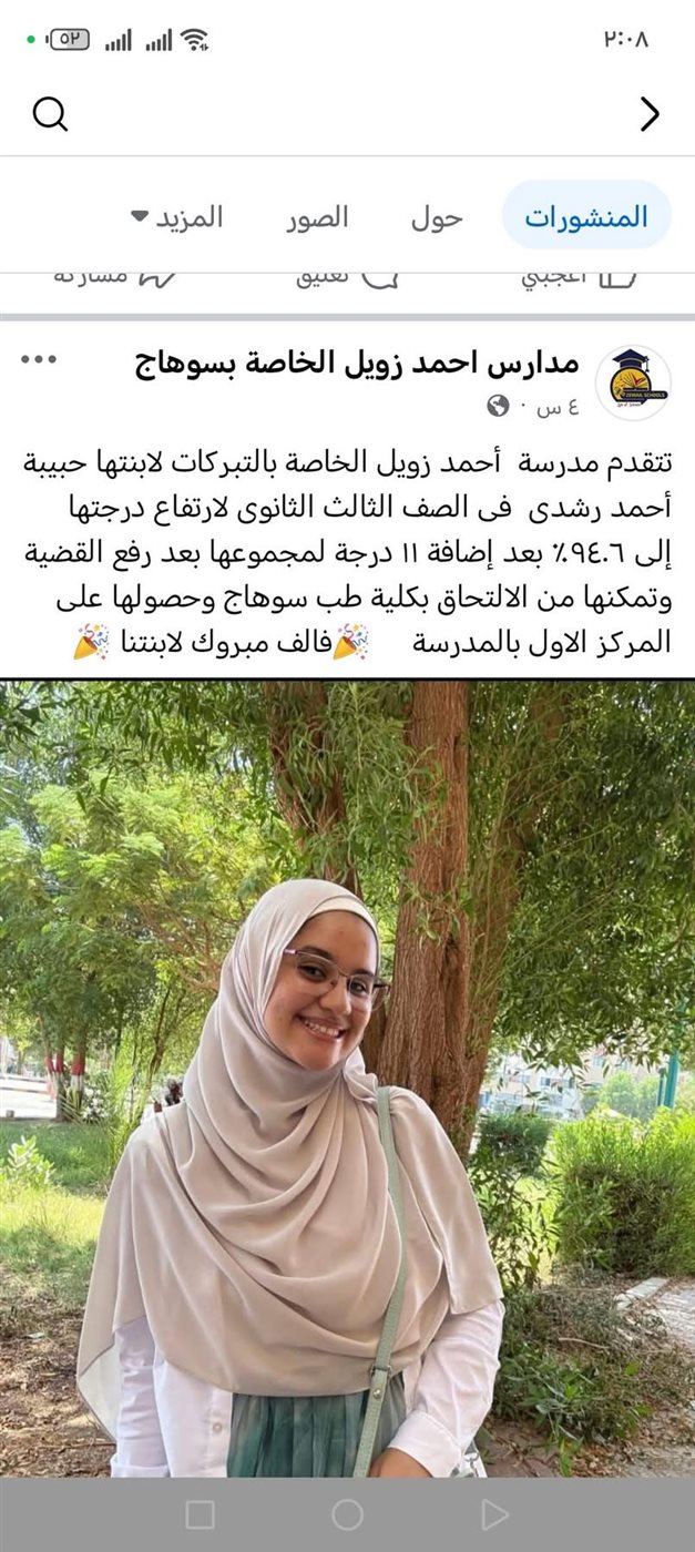 طالبة تحصل على 11 درجة بعد حكم قضائي.. ومدرسة أحمد زويل تهنئها عبر “فيس بوك”
