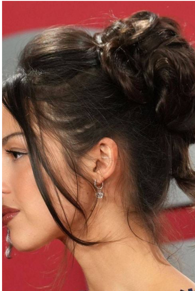 ولكن البطل المجهول في إطلالة مغنية "رخصة القيادة" كان تسريحة شعرها المرفوعة الفوضوية المستوحاة من باميلا أندرسون في التسعينيات.