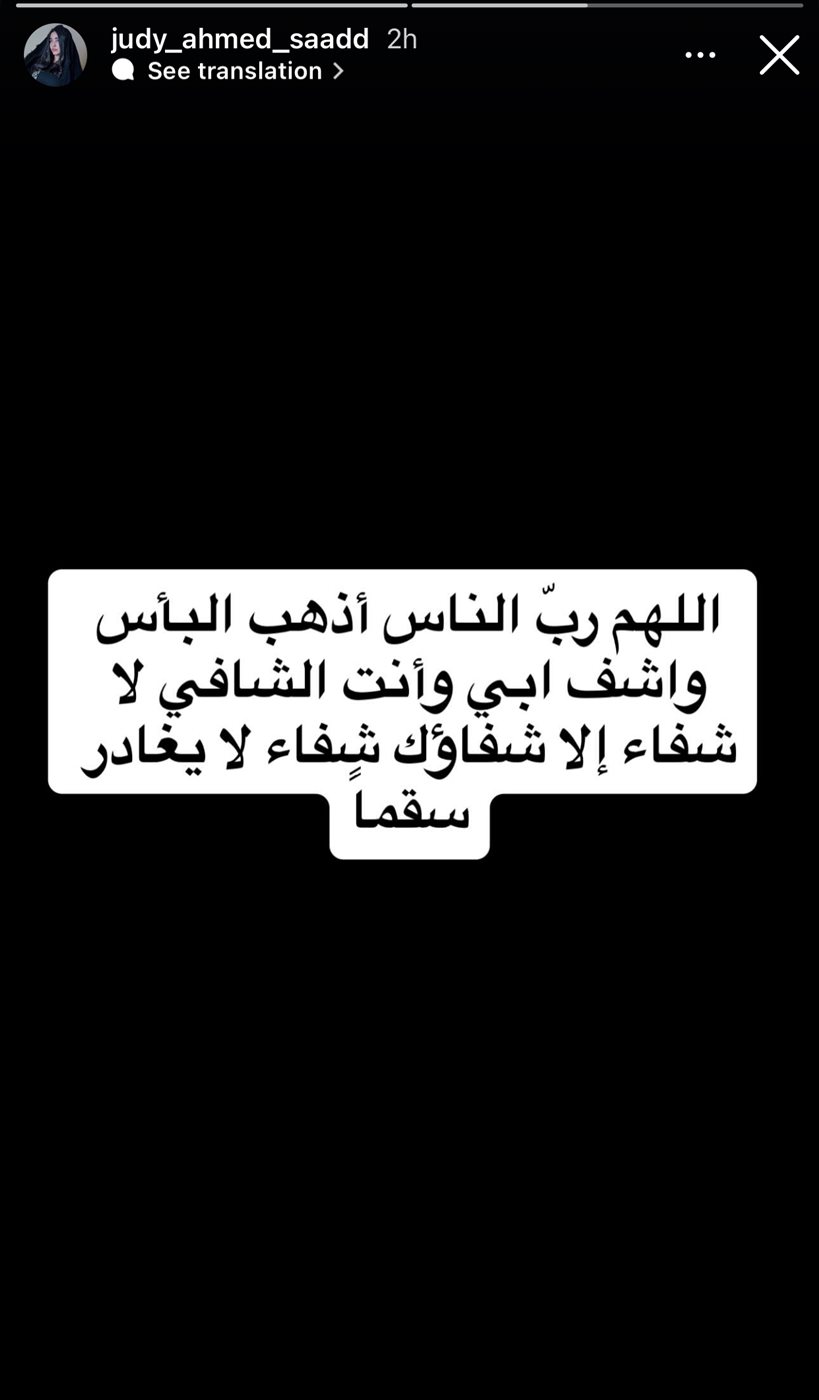 كتبت جودي عبر حسابها الخاص بموقع تبادل الصور والفيديوهات إنستجرام: “اللهم رب الناس أذهب البأس واشف أبي وأنت الشافي لا شفاء إلا شفاؤك، شفاءًا لا يغادر سقمًا”.