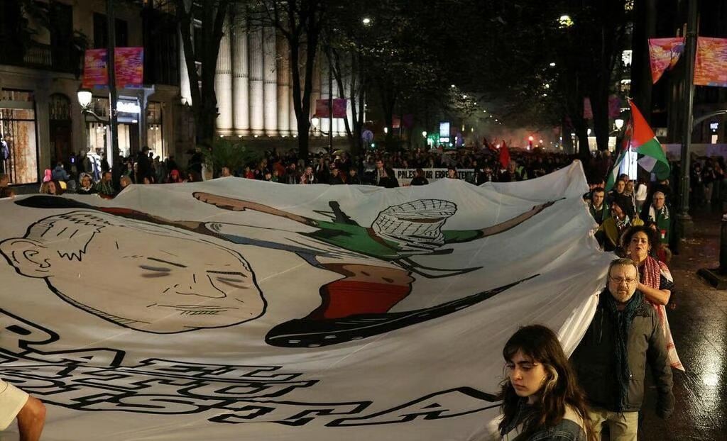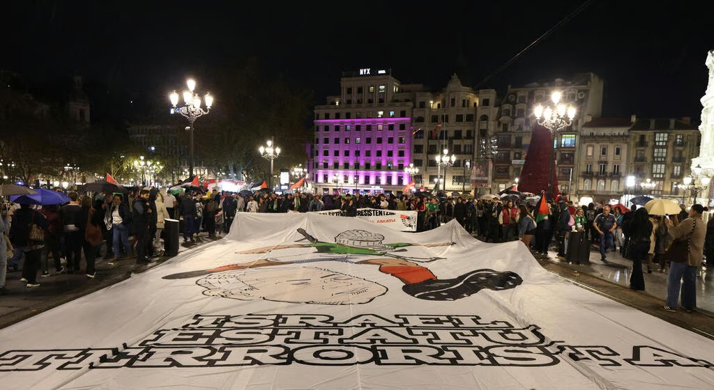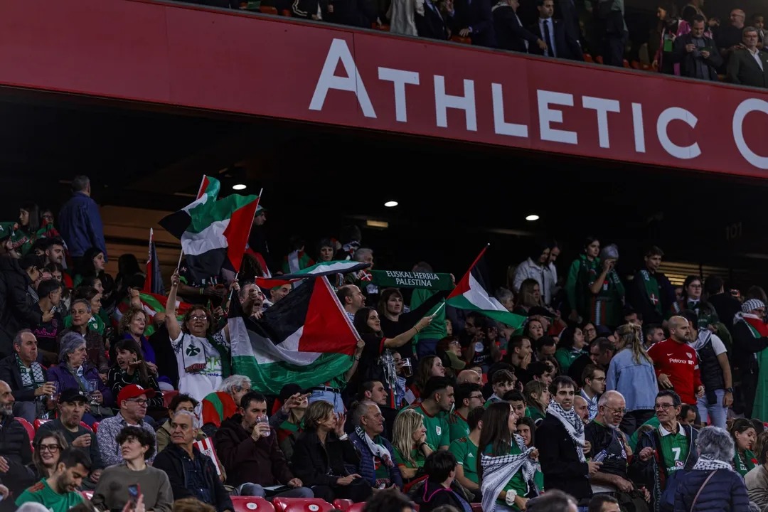 وقال المنظمون إن عدد المشجعين تجاوز 50 ألف شخص، رددوا هتافات مؤيدة لفلسطين ورفعوا لافتات وأعلاما فلسطينية خلال مباراة و دية بين فلسطين ومنتخب إقليم الباسك الإسباني، كما عرضوا صور سليمان العبيد، القائد السابق للمنتخب الفلسطيني، الذي قتلته إسرائيل في غزة أثناء انتظاره مساعدات إنسانية.