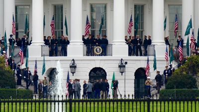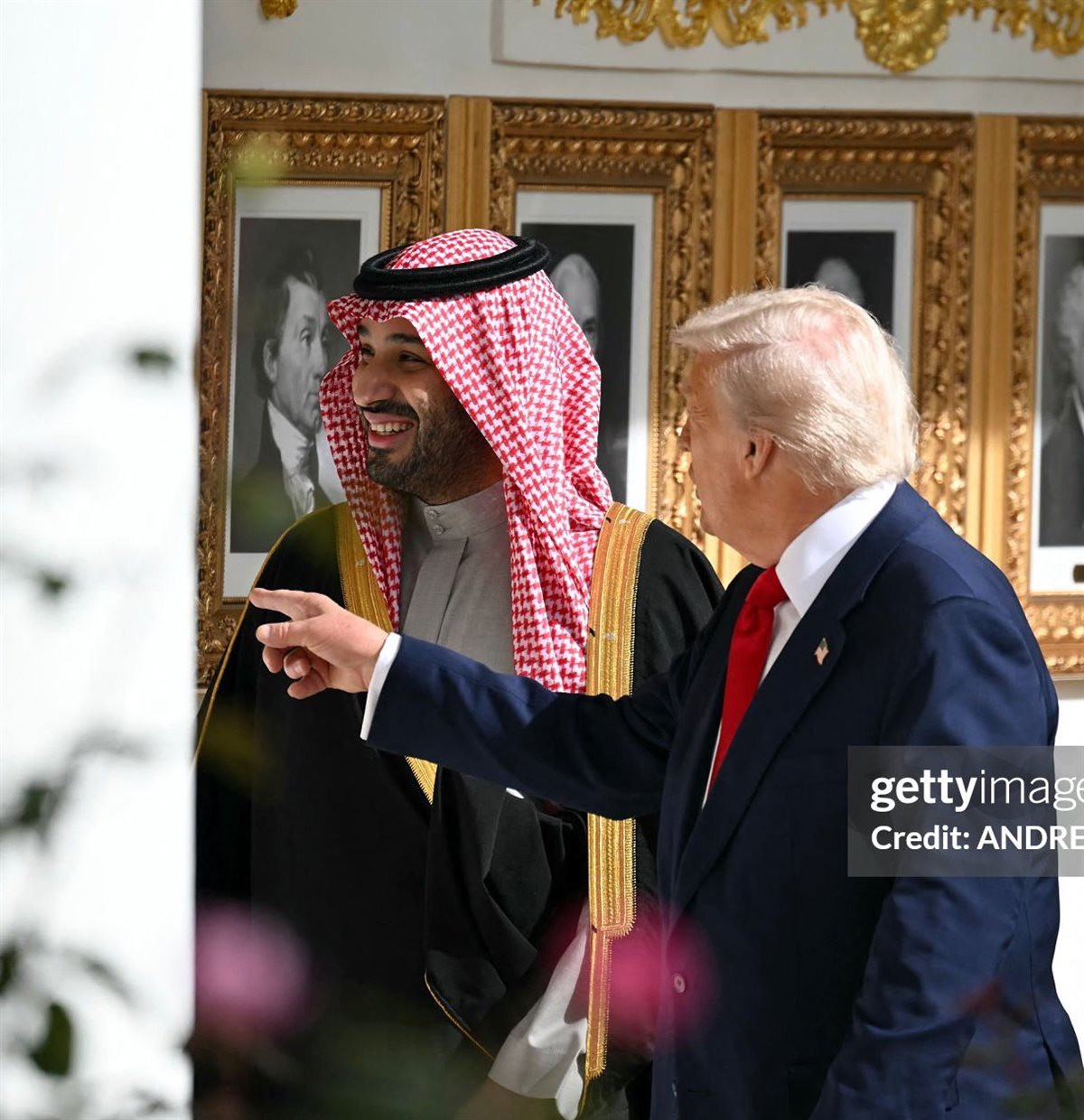 ترامب والأمير محمد بن سلمان يشاهدان صور رؤوساء امريكا بممر البيت الأبيض