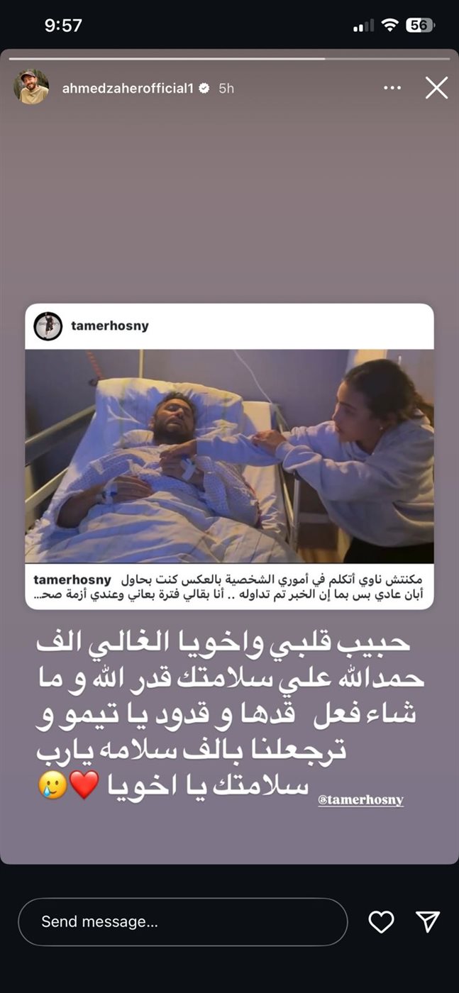 أحمد زاهر يساند تامر حسني في أزمته الصحية: ترجعلنا بالسلامة يا أخويا