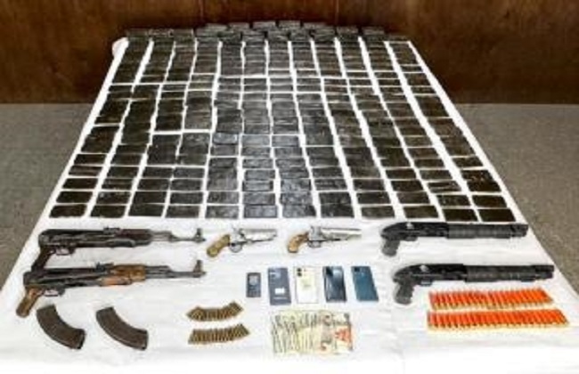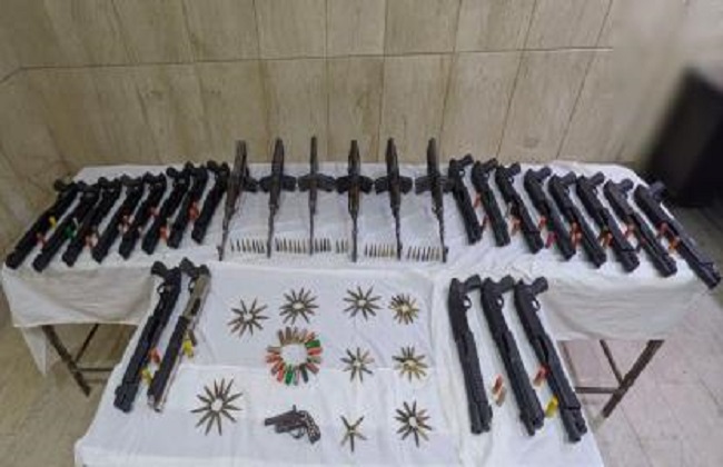 كما تم ضبط ترسانة من الأسلحة النارية غير المرخصة قُدّرت بـ106 قطعة سلاح، من بينها 16 بندقية آلية، و39 بندقية خرطوش، و51 فرد خرطوش.