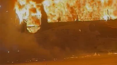 تفحم بالكامل.. السيطرة علي حريق نشب بأتوبيس نقل جماعي بجوار نادي الشمس