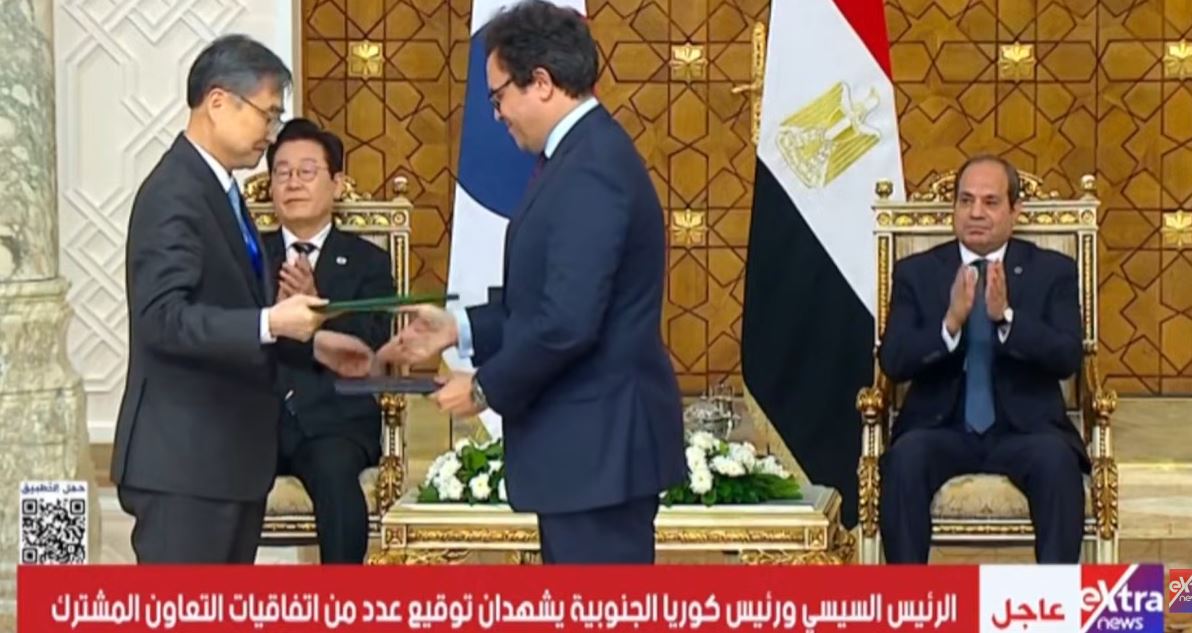 شهد الرئيس عبد الفتاح السيسي ورئيس كوريا لي جاي ميونغ توقيع عدد من اتفاقيات التعاون المشترك، حسبما نقلت فضائية «إكسترا نيوز».