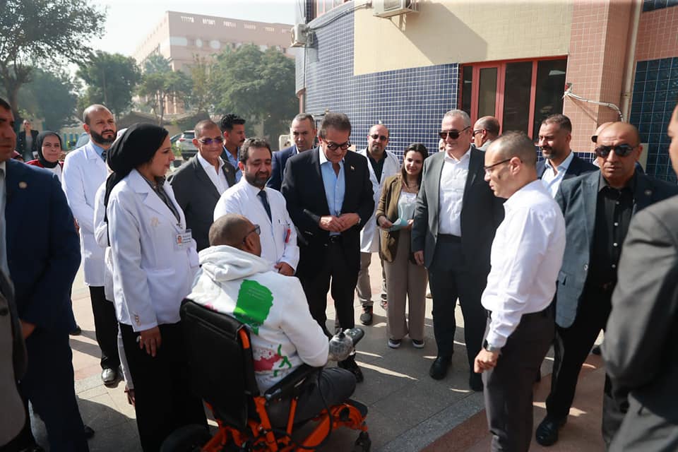 بدأ الوزير جولته بالمعهد القومي للجهاز الحركي والعصبي والطب الرياضي، حيث استمع إلى شكاوى المرضى بالعيادات الخارجية، ووجه بحجز حالة للعلاج الفوري وإحالة سيدة لتركيب سماعات أذن بمعهد السمع والكلام.