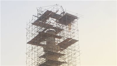 وأظهرت الصور أعمال توقيف تمثال ضخم لأمنحتب الثالث، وهذا ما صرح به مصدر مسؤول في المجلس الأعلى للآثار.