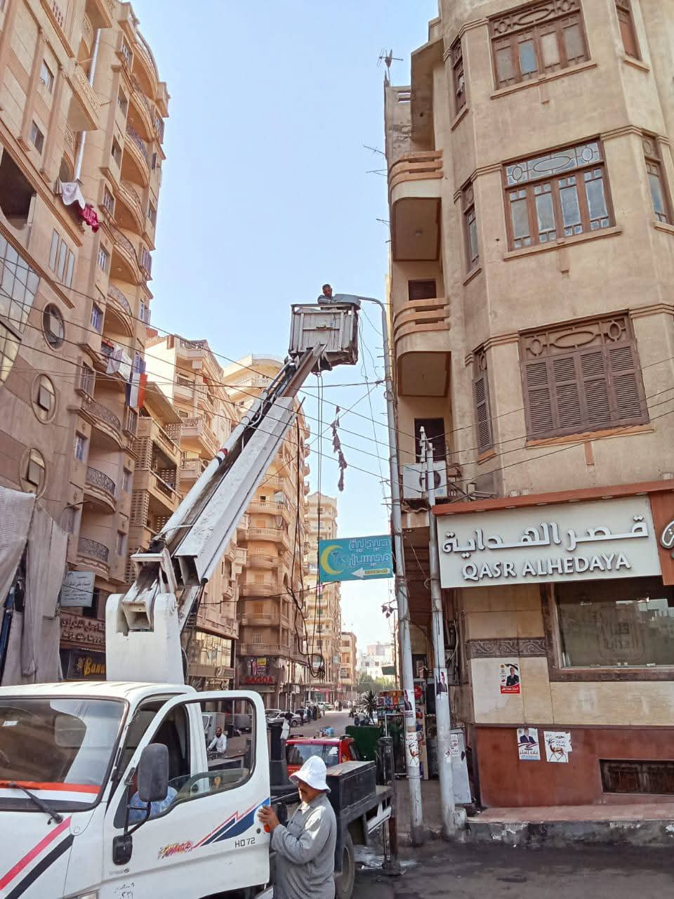 تغيير كشافات شارع مسجد الشوربجي وأمام كنيسة القلعة.