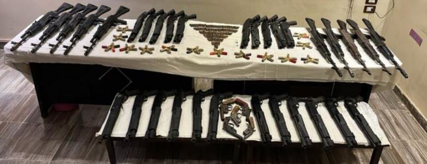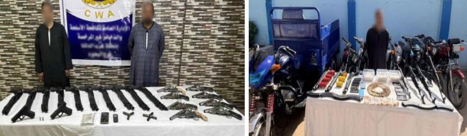 وأسفرت المداهمات كذلك عن ضبط ترسانة من الأسلحة النارية بلغت 98 قطعة سلاح، تضمنت: 22 بندقية آلية، 43 بندقية خرطوش، 29 فرد خرطوش، 3 طبنجات، ورشاش، إلى جانب ذخائر متنوعة. وقدّرت القيمة المالية للمضبوطات من المواد المخدرة بنحو 78 مليون جنيه.