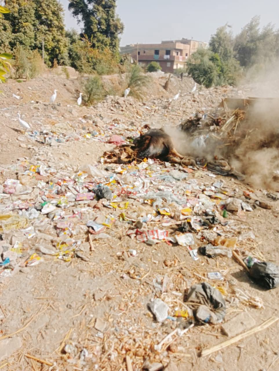 واضاف سيد عامر، احد الاهالي، أن البعض من الاهالي يقوم بحرق تلك الحيوانات النافقة ،ما ينشر الروائح الكريهه .