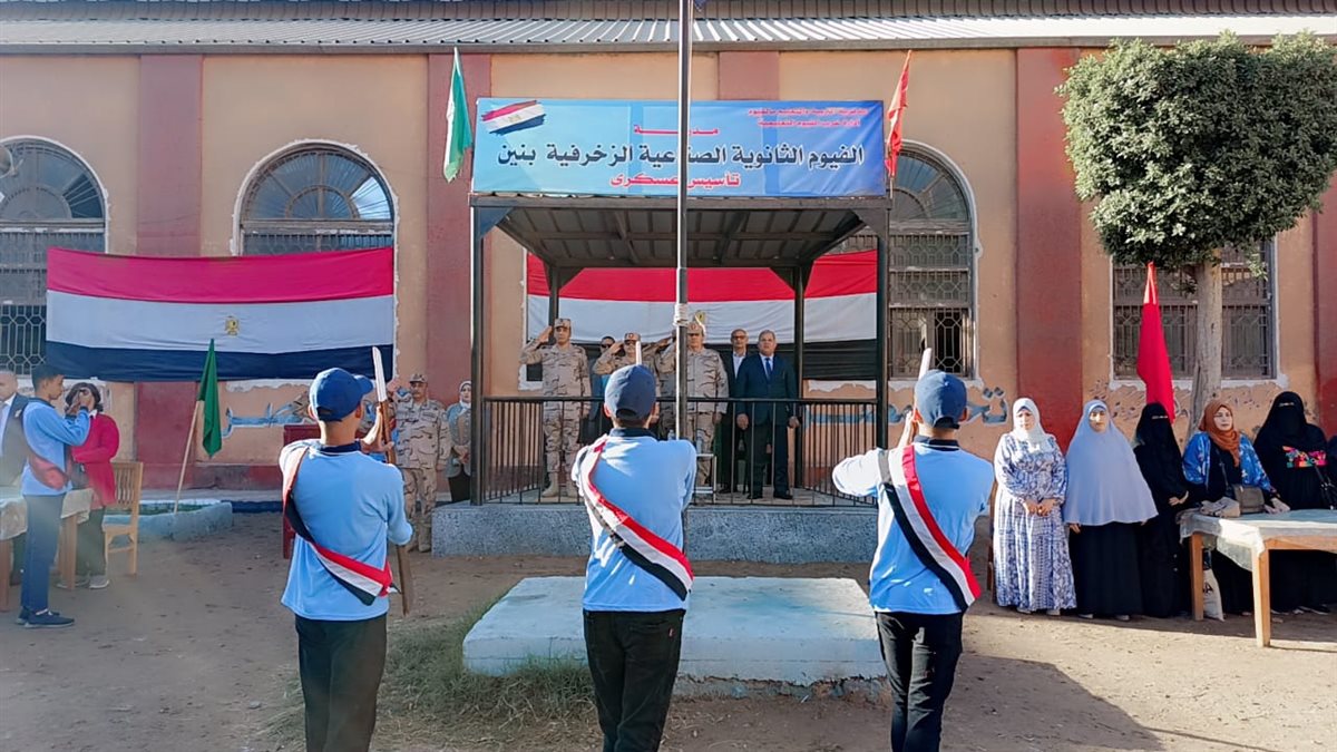 لبث روح الولاء والانتماء للطلاب.. شهد اللواء أركان حرب عمرو أحمد رياض، قائد مجموعة الأتصال بوزارة التربية والتعليم واللواء محمد أحمد منصور، قائد قطاع الجيزة والفيوم لمدارس التأسيس العسكري، والعميد شريف عامر، المستشار العسكري لمحافظة الفيوم، والدكتور خالد خلف قبيصي، وكيل وزارة التربية والتعليم بالفيوم، ومحمد عبد السلام، مدير عام التعليم الفني، والدكتور عماد فكري، مدير إدارة غرب الفيوم التعليمية، طابور الصباح وتحية العلم بمدرسة الفيوم الثانوية الصناعية الزخرفية للتأسيس العسكري .