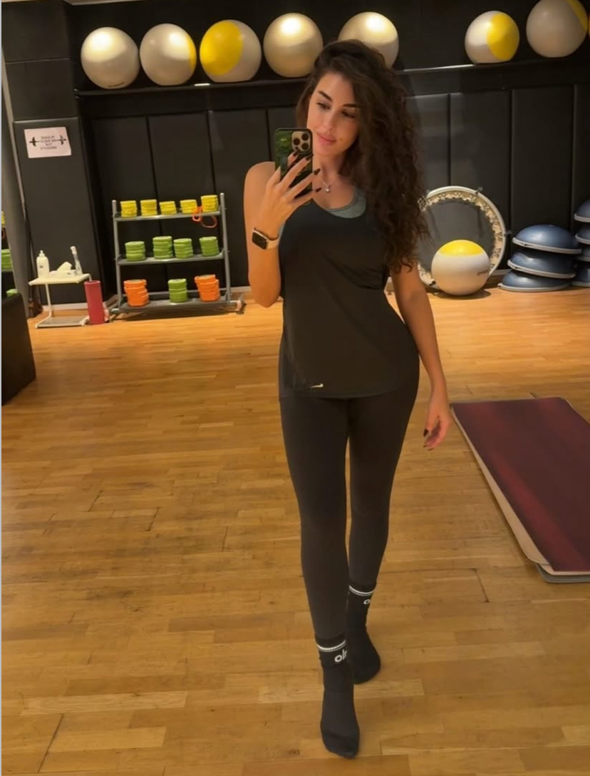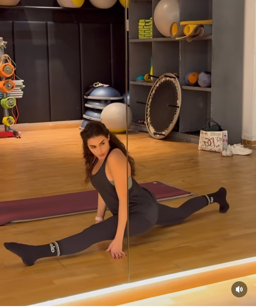 الفنانة ياسمين صبري تمارس الرياضة في الجيم وتبرز رشاقتها