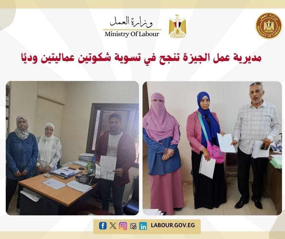 مديرية عمل الجيزة تنجح في تسوية شكوتين عماليتين وديًا
