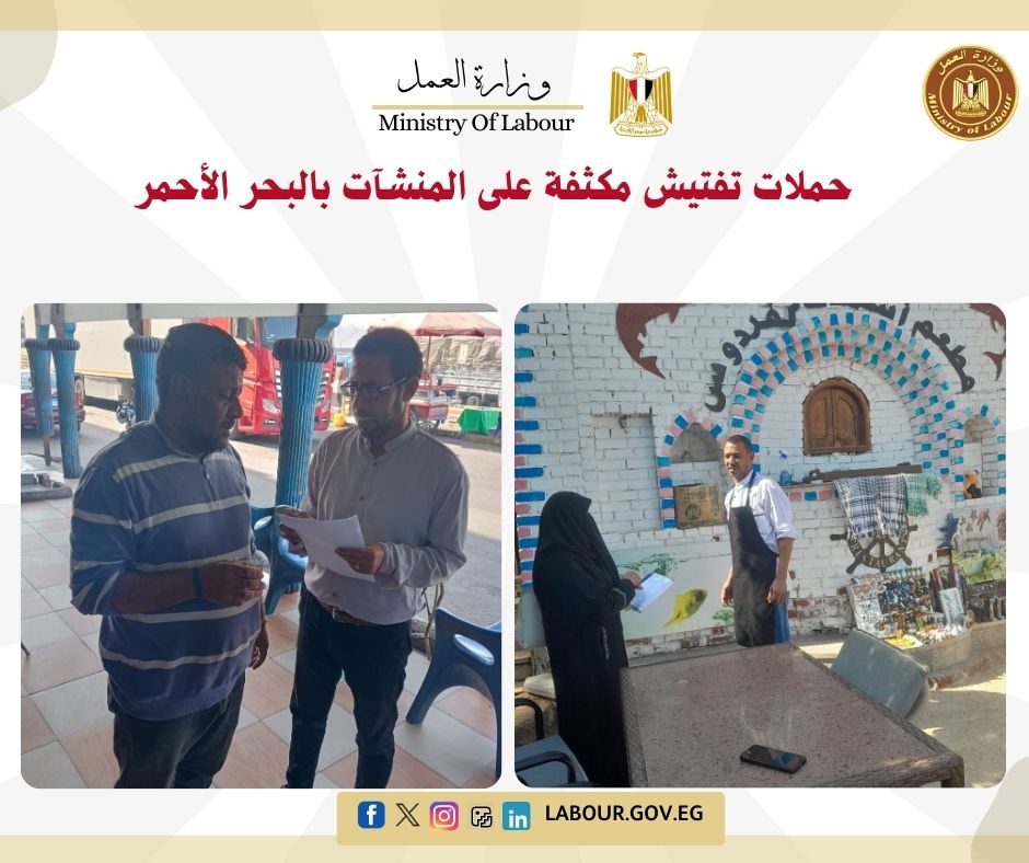 حملات تفتيش على المنشآت بالبحر الأحمر.. أبرز أنشطة مديريات العمل بالمحافظات