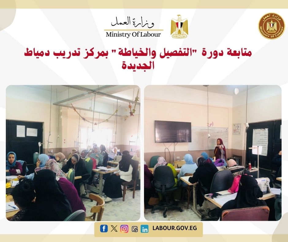 قامت مديرية العمل بدمياط متابعة سير الدورة التدريبية لمهنة "التفصيل والخياطة" بمركز التدريب المهني بدمياط الجديدة، وذلك بتوجيهات من السيد/ فتحي التلاوي، مدير مديرية العمل بدمياط. والذي أوضح أن هذه المتابعة تأتي تنفيذاً لتوجيهات وزير العمل محمد جبران واهتمامه بمنظومة التدريب المهني وتأهيل الشباب لسوق العمل.