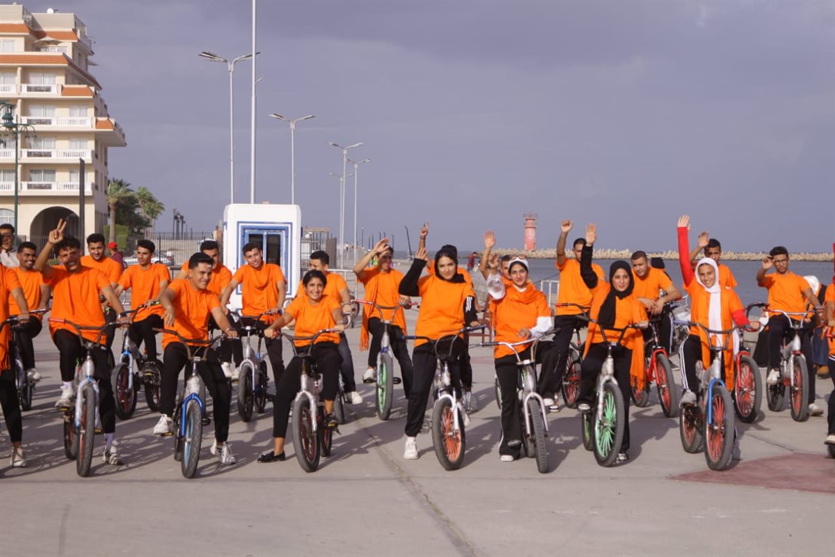 نائب محافظ دمياط تطلق إشارة رالي الدراجات من اللسان