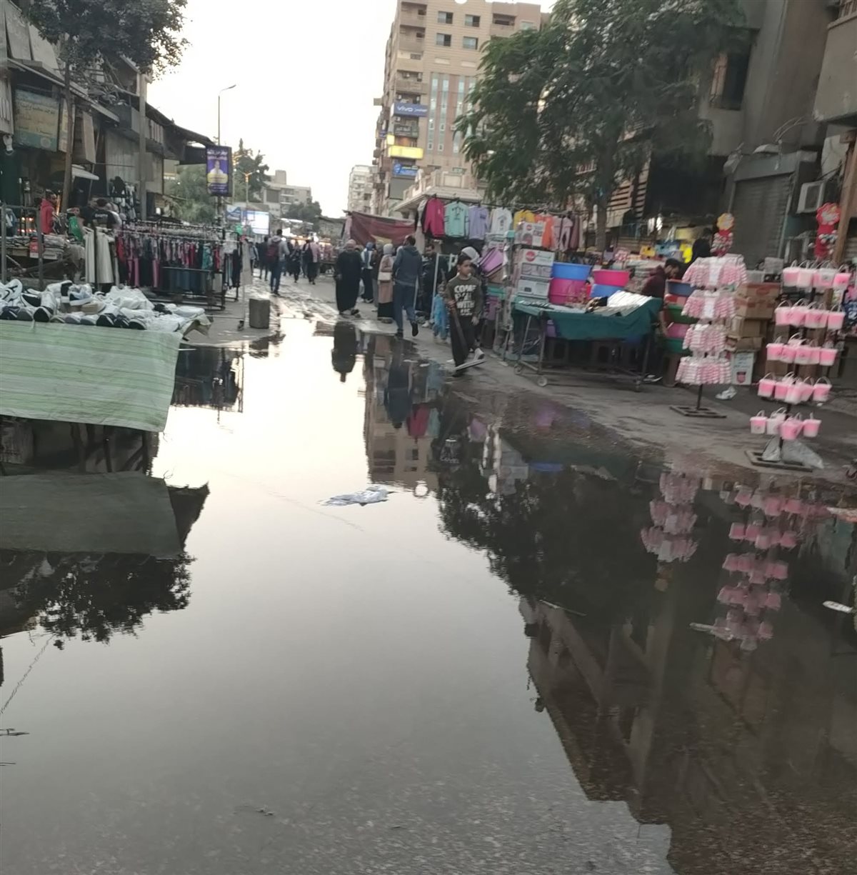 انفجار مواسير الصرف الصحي في ميدان محطة مترو حلوان.. الأهالي يستغيثون|صور
