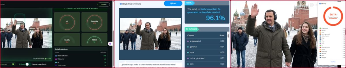 تبين أن هذه المزاعم غير حقيقية، حيث وّلدت الصورة بالكامل بالذكاء الاصطناعي، وذلك بعدما دقق المحللون في الصورة، التي كُتب في أعلاها عبارة MindVideoAI، التي تدل على اسم البرنامج الذي تمت صناعتها به.