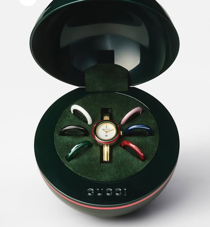 أعادت دار جوتشي إحياء ساعتها الأيقونية من الثمانينيات بإطار قابل للتبديل، ساعة أنيقة ومرحة أصبحت رمزًا للموضة منذ عقود.