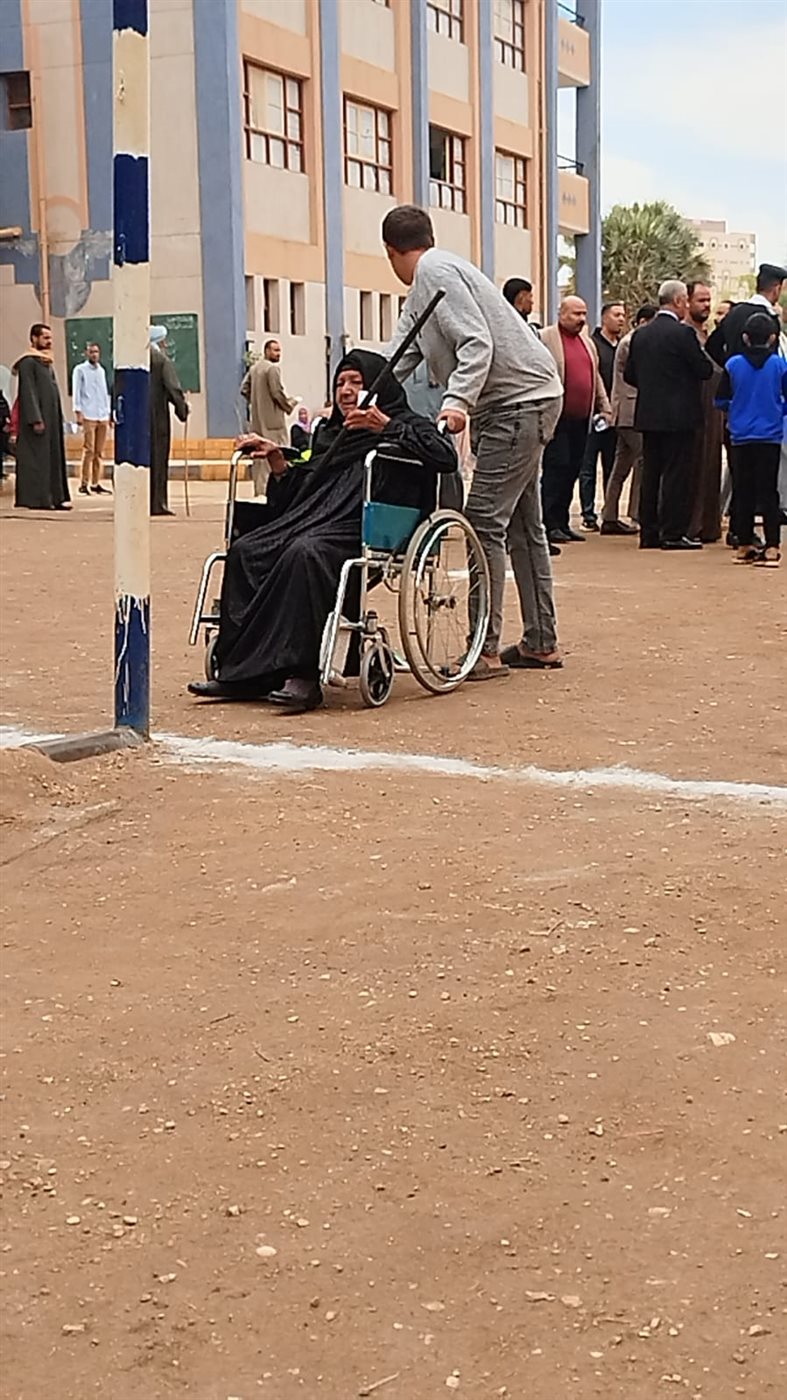 لقطة مؤثرة: مسنة على كرسي متحرك تمارس حقها الانتخابي بقنا
