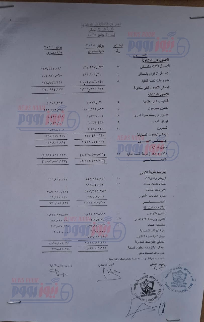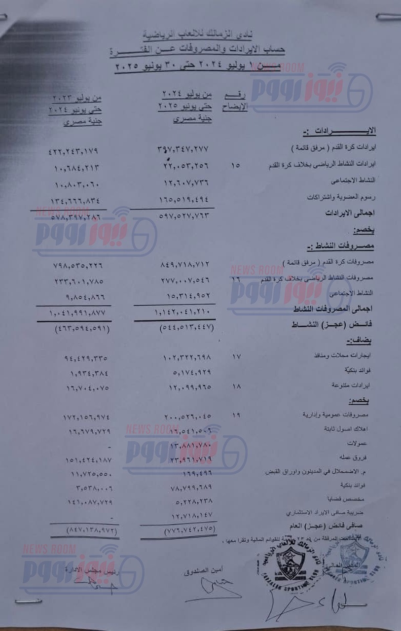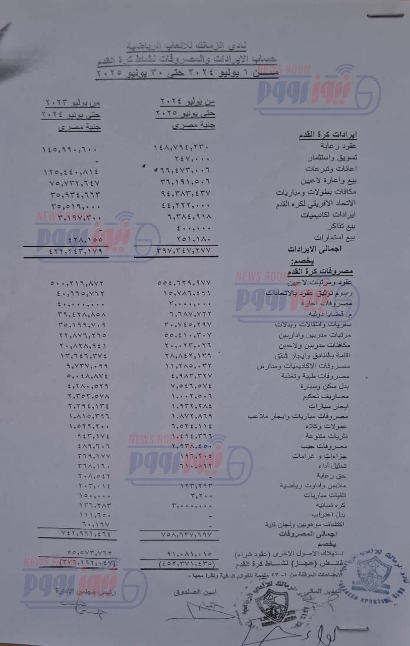 ينشر موقع نيوز روم، ميزانية نادي الزمالك، عن السنة المنقضية، والتي تشمل كرة القدم والأنشطة الرياضية والاجتماعية والعضويات