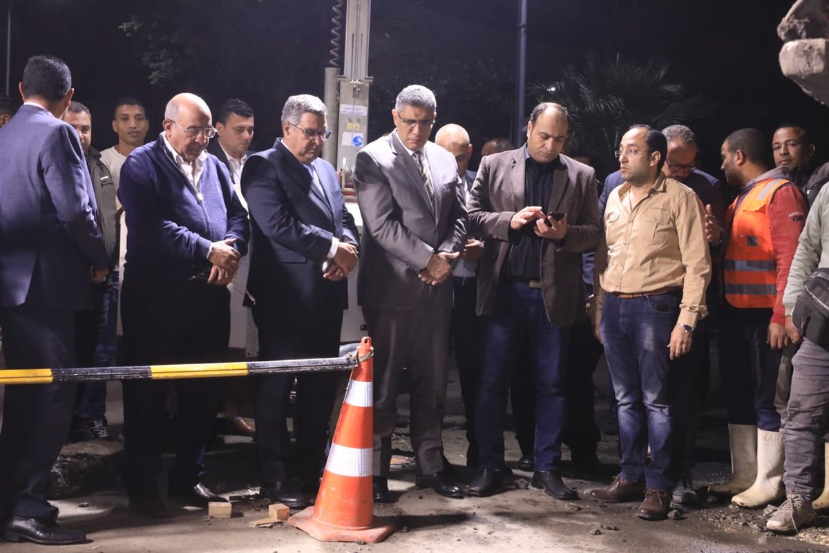 محافظ الجيزة يتفقد ميدانيا إصلاح كسر خط المياه الرئيسي أمام مستشفى أم المصريين