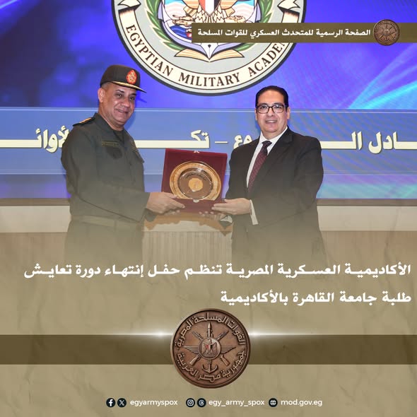 تنفيذاً لتوجيهات القيادة السياسية لتعريف طلبة الجامعات بالجهود التى تبذلها الأكاديمية فى إعداد وتأهيل الكوادر البشرية فى مختلف التخصصات ، نظمت الأكاديمية العسكرية المصرية مراسم إنتهاء دورة تعايش طلبة جامعة القاهرة بالأكاديمية .