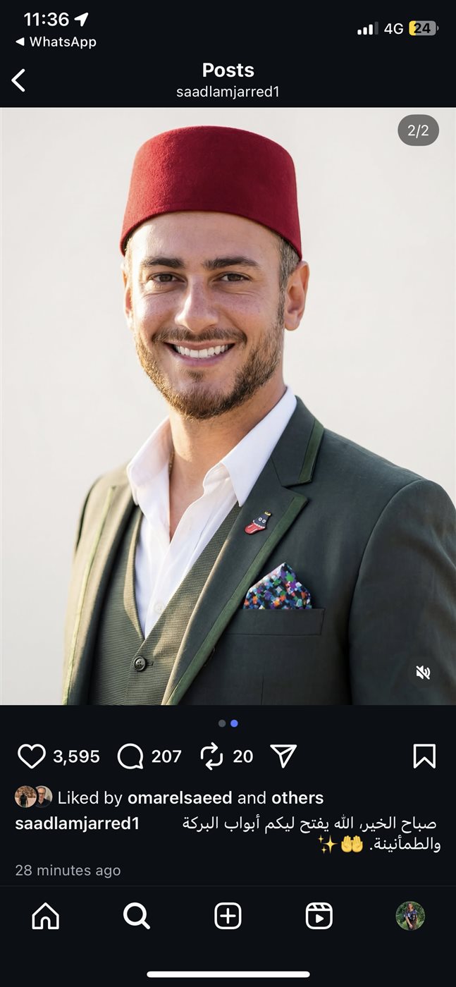 ولكنه حرص سعد لمجرد على نشر رسالة أمل وتفاؤل مع صباح اليوم، وذلك عبر حسابه الرسمي على موقع تبادل الصور والفيديوهات إنستجرام، حيث قال معلقًا: “صباح الخير الله يفتح لكم أبواب البركة والطمأنينة”.