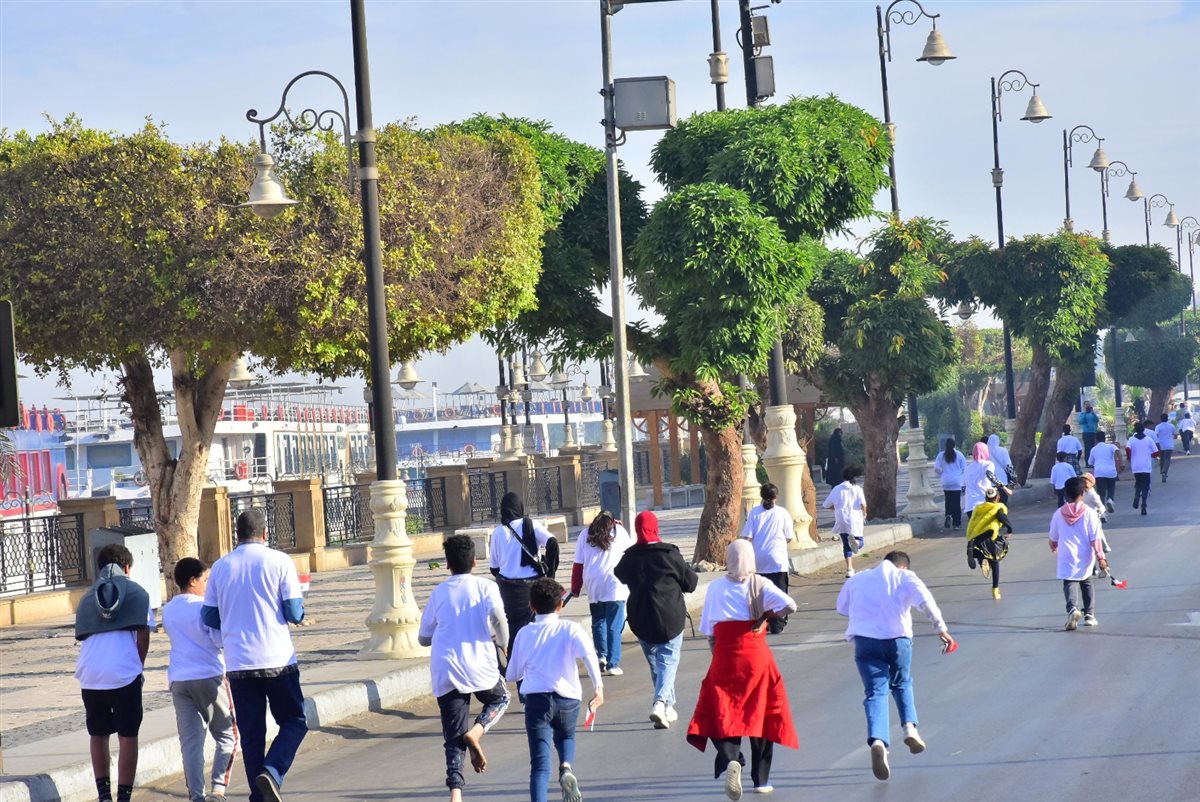 وانطلق الماراثون من أمام معبد الأقصر بشارع كورنيش النيل، حيث سار المشاركون على خط مستقيم بمحاذاة الطريق السياحي وصولًا إلى نقطة النهاية أمام معبد الكرنك، وسط تأمين كامل للفعالية وتسهيل حركة المرور.