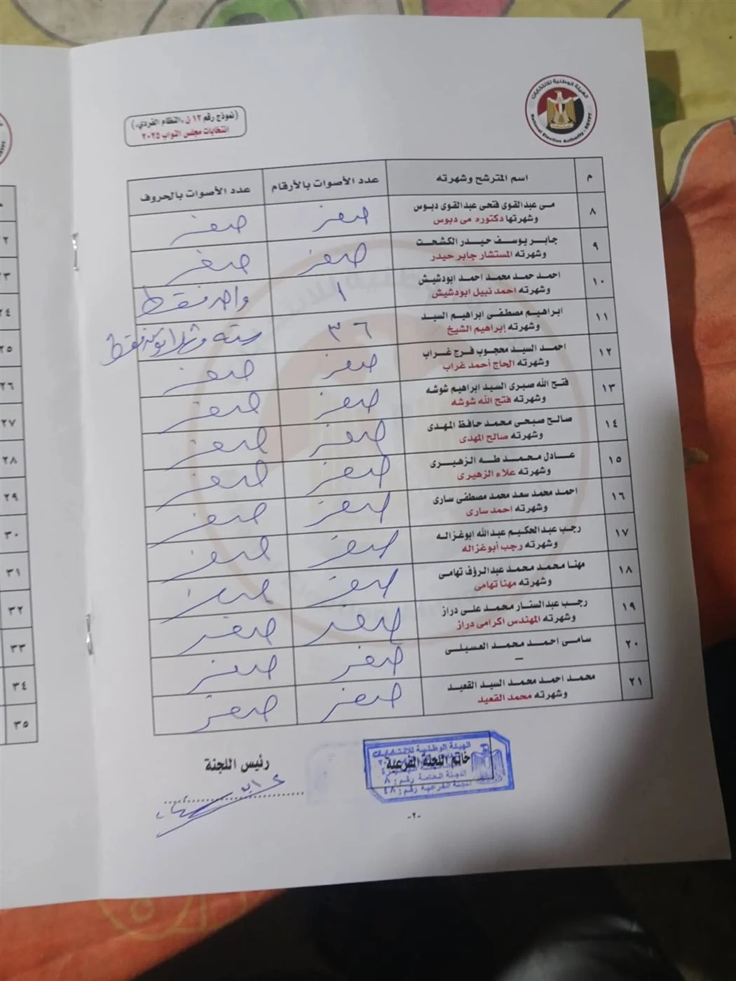 حصل 26 مرشحًا في اللجنة الفرعية رقم 48 بمدرسة عبد الفتاح عبده الابتدائية، ومقرها عزبة حوض فارس بدائرة مركز إيتاي البارود في البحيرة، على “صفر” في نتائج الفرز، وفقًا للحصر العددي لانتخابات النواب بالدوائر الملغاة من المرحلة الأولى.