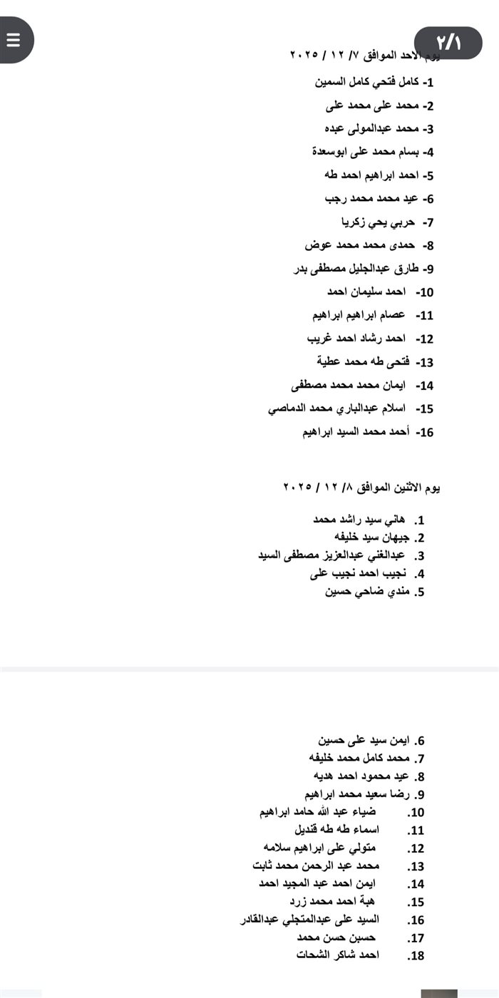 (تُستكمل البيانات التفصيلية بحسب جدول المواعيد أو أسماء المتقدمين إن كانت مرفقة)