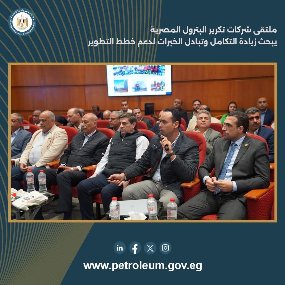 تنفيذاً لتوجيهات المهندس كريم بدوي وزير البترول والثروة المعدنية بالإهتمام بتبادل الخبرات والتجارب بين شركات التكرير في إطار المحور الثاني من استراتيجية عمل الوزارة ، عُقد بمدينة الأسكندرية ملتقى شركات تكرير البترول بمصر (تبادل الخبرات والمعلومات نحو بناء المزيد من النماذج الناجحة والتشغيل الاقتصادى المستدام )، والذى يقام دورياً لتحقيق المزيد من التكامل وقصص النجاح لدى الشركات ومناقشة التحديات.