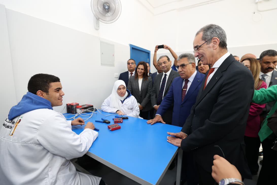 كما زار الوفد مدرسة WE للتكنولوجيا التطبيقية بالمنصورة والتي تضم 364 طالبًا وتوظف 44 معلمًا وموظفا. تم تجهيز المدرسة ببنية تحتية متقدمة للاتصالات، مما جعلها مدرسة ذكية متخصصة في تكنولوجيا المعلومات والاتصال، كجزء من رؤية MCIT لتطوير جيل جديد من المهنيين ذوي المهارات الفنية القادرين على المنافسة في الأسواق المحلية، والاقليمية، والدولية. تضم المدرسة 24 فصلا دراسيا وخمسة مختبرات حاسوب وشبكات وورشتين متخصصتين، تقدم للطلاب التدريب العملي. تخرجت مجموعتان من المدرسة، بلغ مجموعهم 383 خريجاً، الكثير منهم التحق بالقوى العاملة أو استمروا في التعليم العالي.