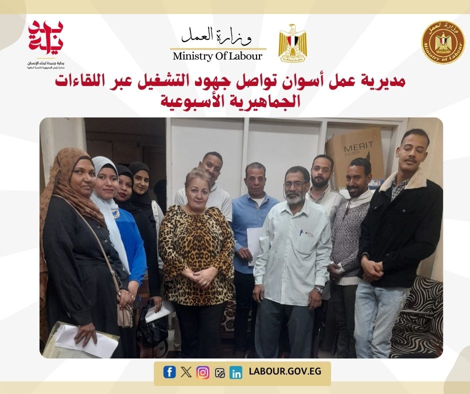 مديرية عمل أسوان تواصل جهود التشغيل عبر اللقاءات الجماهيرية الأسبوعية