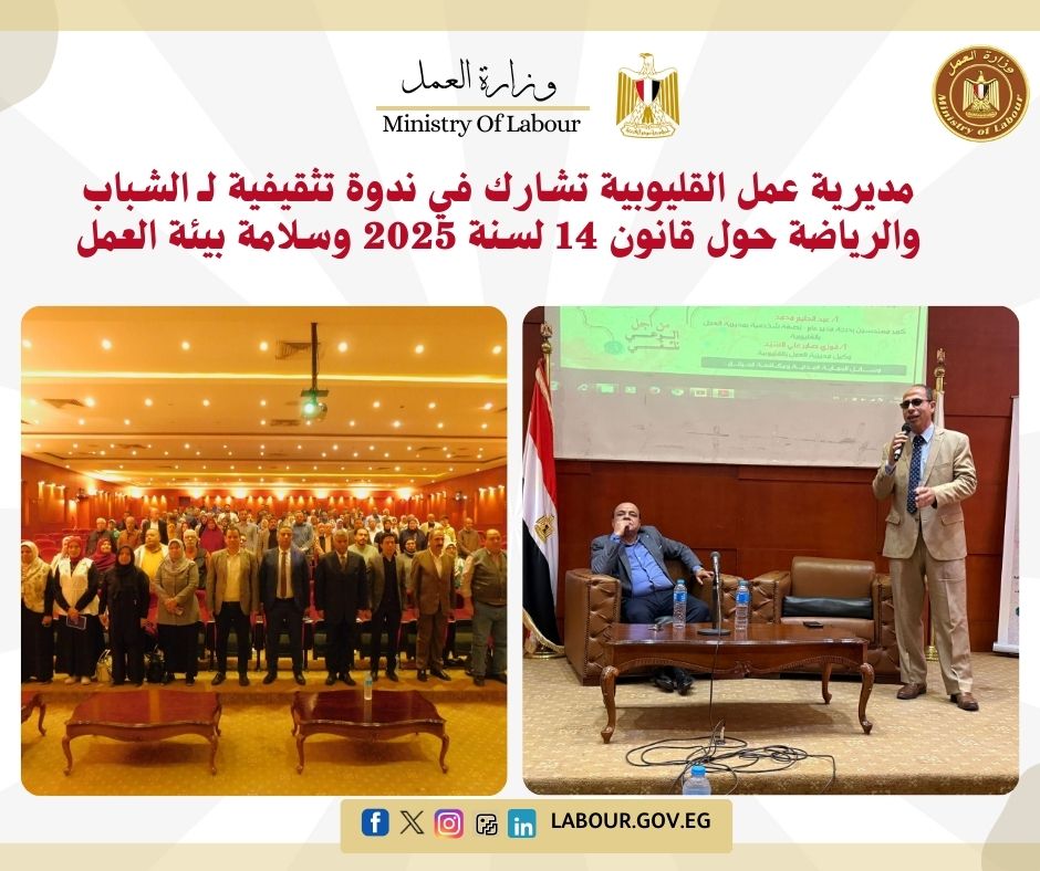 مديرية عمل القليوبية تشارك في ندوة تثقيفية لـ الشباب والرياضة حول قانون 14 لسنة 2025 وسلامة بيئة العمل