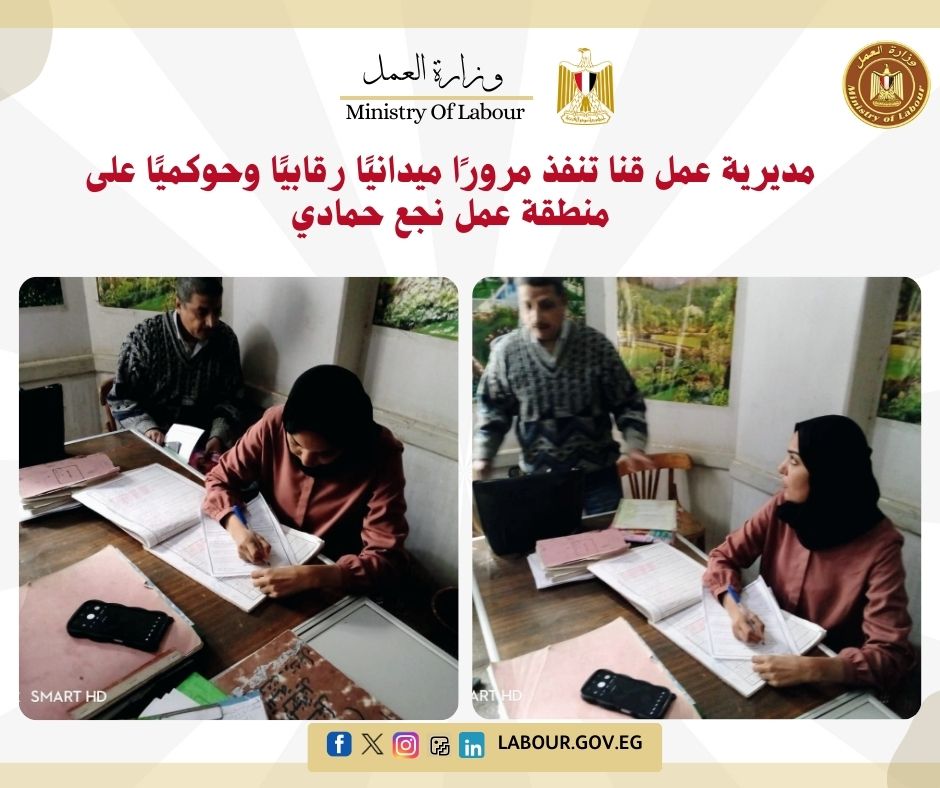 مديرية عمل قنا تنفذ مرورًا ميدانيًا رقابيًا وحوكميًا على منطقة عمل نجع حمادي