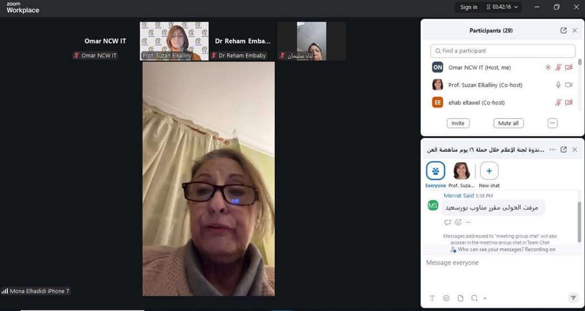 نظّمت لجنة الإعلام بالمجلس القومي للمرأة ندوة موسعة بعنوان "العنف الإعلامي والمرأة"، وذلك ضمن فعاليات حملة الـ16 يوم لمناهضة العنف ضد المرأة، بمشاركة عضوات لجنة الإعلام، ومقررات فروع المجلس بالمحافظات، ومجموعة من الملهمات العربيات.