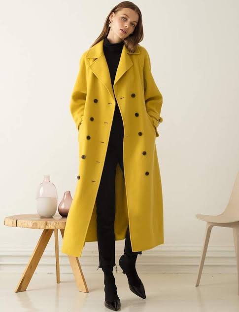 المعطف الأصفر الليموني: طاقة مشرقة في عز البرد