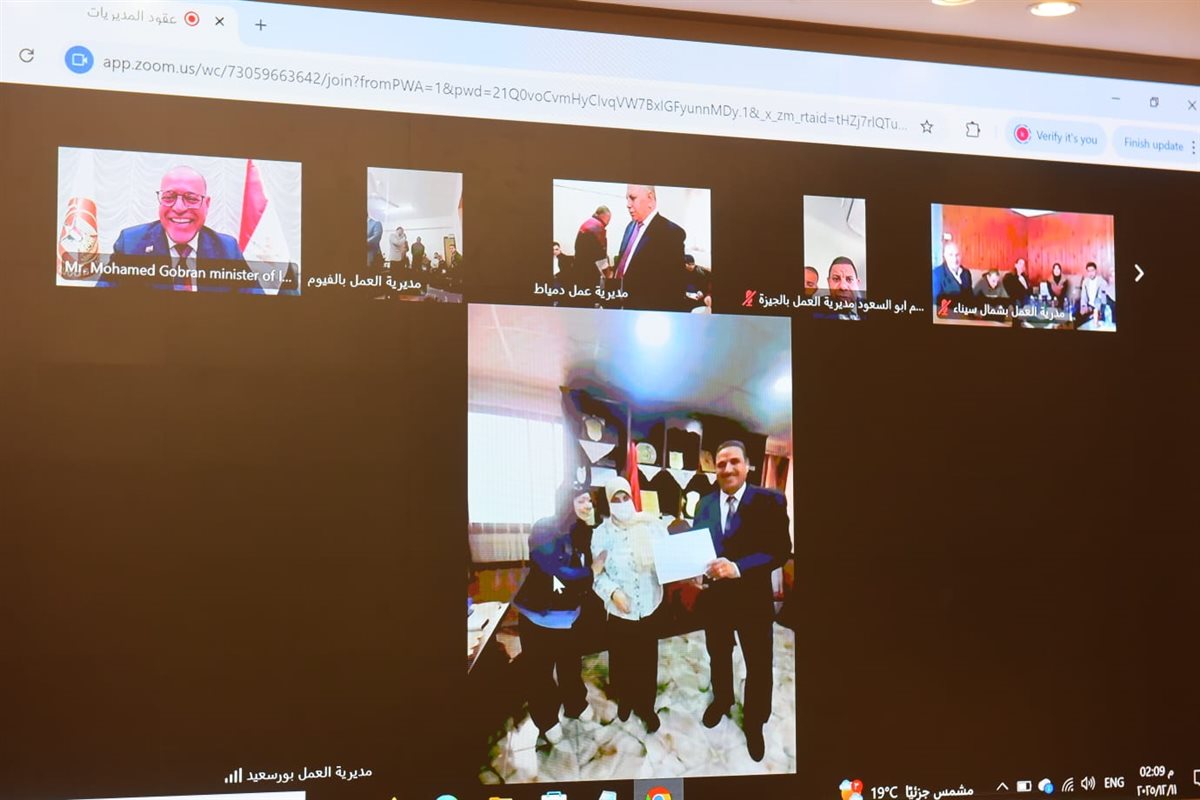 وزير العمل يشهد عبر "الفيديو كونفرانس" تسليم 405 عقد عمل لذوي همم في 27 محافظة
