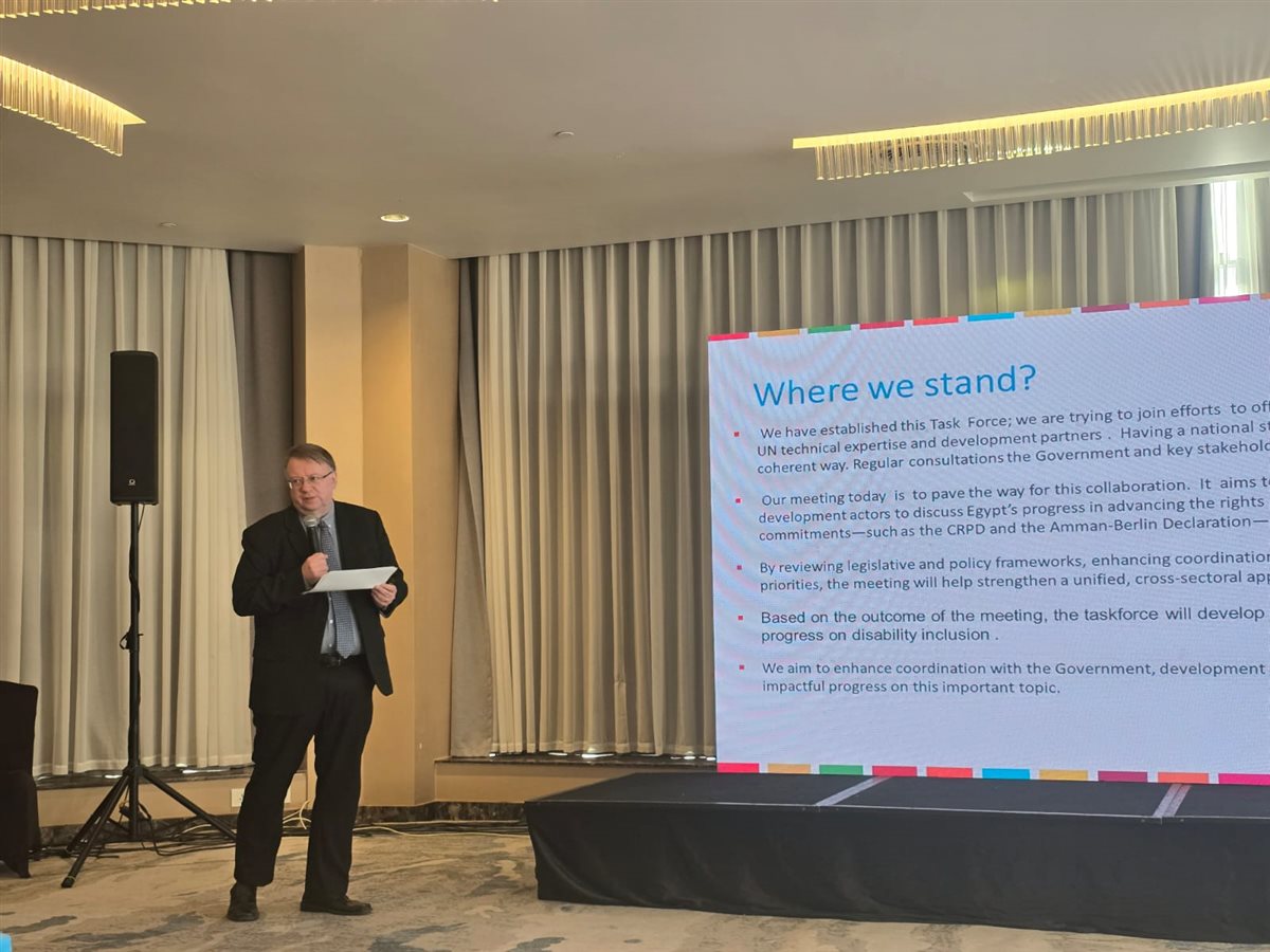وتناولت جلسات الورشة الوضع الراهن للأشخاص ذوي الإعاقة في مصر، والأولويات الوطنية، والرؤية المستقبلية للتعاون المشترك، حيث تمت مناقشة الأطر التشريعية والسياسات ذات الصلة، وفي مقدمتها قانون حقوق الأشخاص ذوي الإعاقة الصادر بالقانون رقم 10 لسنة 2018، وآليات تطبيقه، وقانون العمل رقم 14 لسنة 2025، كذلك المجالات التي تستدعي تعزيز التنسيق بين المؤسسات الحكومية ومنظمات الأمم المتحدة وشركاء التنمية لضمان تنفيذ فعال للسياسات الداعمة.