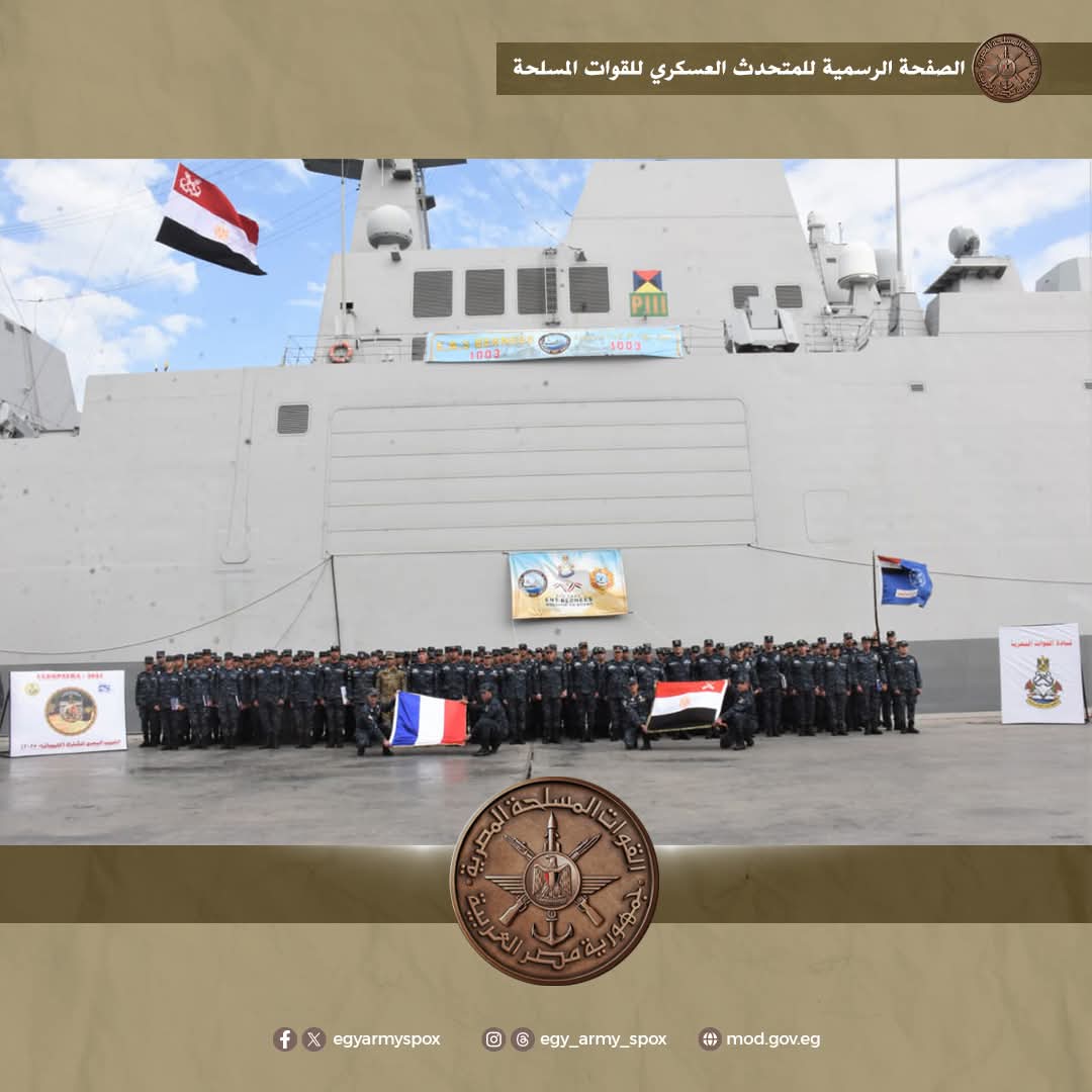 فى إطار دعم العلاقات المتميزة وتعزيز التعاون وتبادل الخبرات بين القوات المسلحة لكلاً من مصر وفرنسا انطلقت فعاليات التدريب البحرى المشترك المصرى الفرنسى " كليوباترا - 2025 " والذى يستمر لعدة أيام بالمياه الإقليمية الفرنسية ، وبمشاركة وحدات من القوات البحرية المصرية والفرنسية .