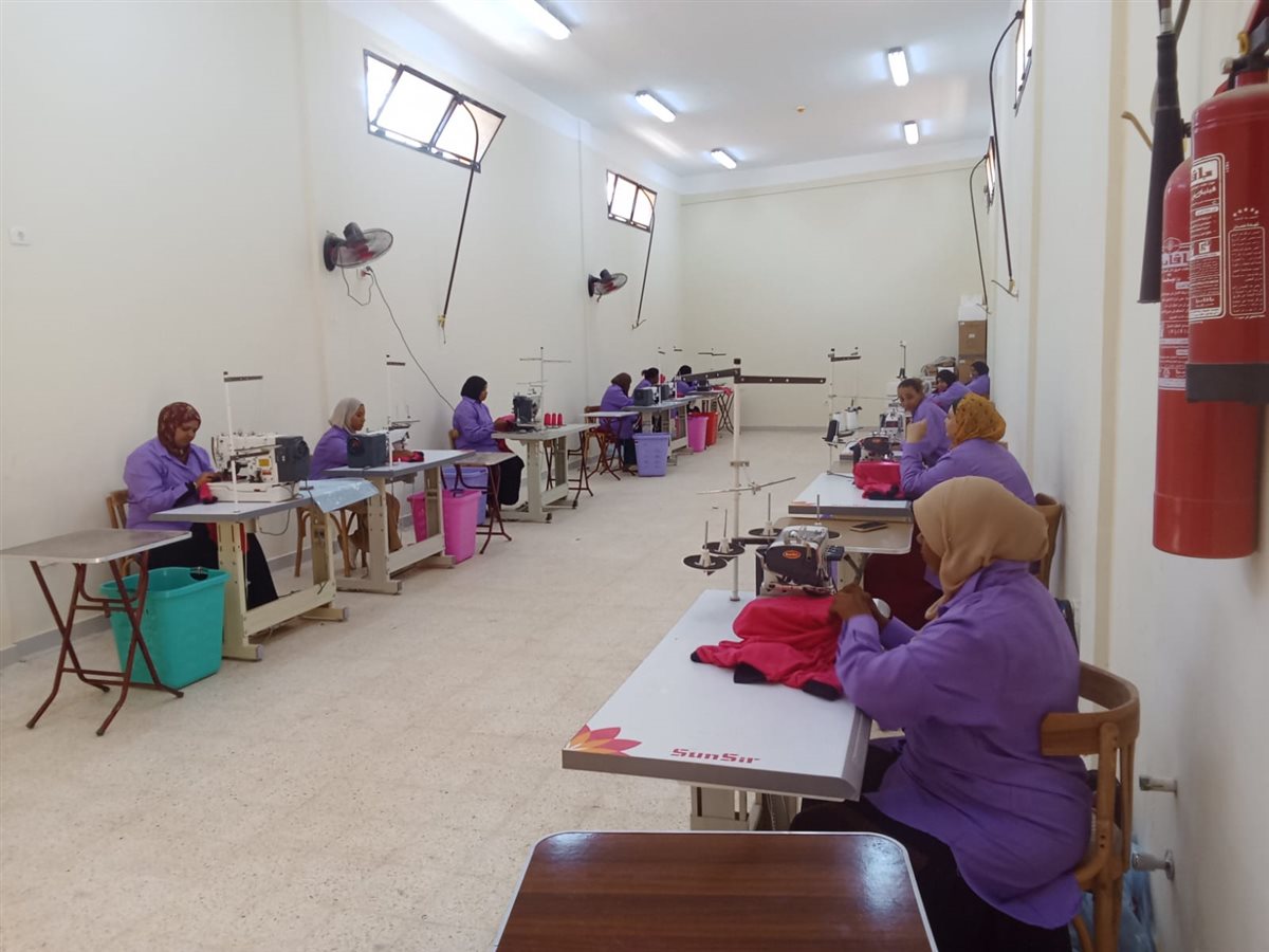 وتم تخصيص ورشتين لخط إنتاج مصغّر للملابس الجاهزة مزود بـ38 ماكينة حديثة، إلى جانب 6 ورش مفتوحة لمختلف الأنشطة الحرفية.