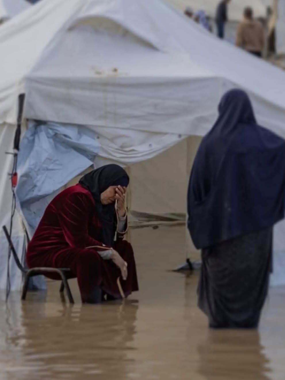 وقال: "هذا هو واقعنا، هذه هي حياتنا"، صرخ مشيرًا إلى خيمته التي غمرتها المياه، وأضاف: "نحن غارقون... بالله عليكم، أين الإنسانية؟ أين الأمة العربية؟".