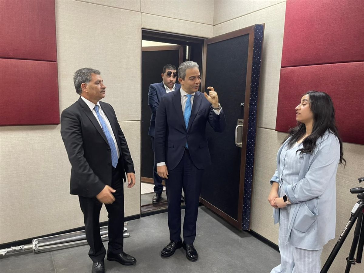 وعقب انتهاء الاجتماع، اصطحب الدكتور عادل صالح، نقيب الإعلاميين، في جولة تفقدية شملت الاستوديوهات والبنية التحتية الإعلامية التي تمتلكها كلية الإعلام بالجامعة البريطانية، والتي تضم استوديوهات الإذاعة والتليفزيون والبودكاست، إلى جانب غرفة الأخبار المتخصصة.