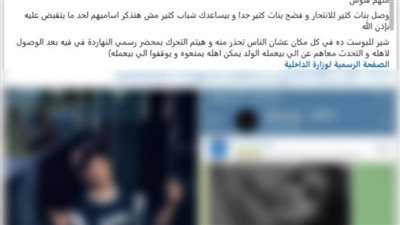 وقال الشاب: الولد الي في الصورة اسمه “م. ا. ع”، من منطقة عين شمس، صاحب جروبات على التليجرام لنشر صور البنات و إبتزازهم و مطالبتهم بفلوس ومش بس كدة ده معاه شخص اسمه خالد بيساعده في سحب بيانات الناس اللي بيهددهم وبيدخل للأهالي يشتمهم ويهددهم و يطلب منهم فلوس.