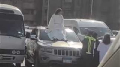 كما ظهر فى الفيديو تدخل رجال المرور لمحاولة السيطرة على الموقف وإنزال الفتاة لكى تعود حركة المرور للطريق.