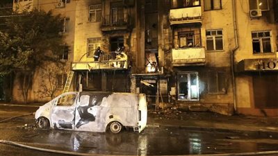 اندلاع حريق في سولوميانسكي بكييف جراء سقوط حطام صاروخ باليستي
