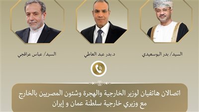 كان الدكتور بدر عبد العاطي وزير الخارجية والهجرة، قد أجرى عدد من اتصالات الهاتفية مع كل من بدر البوسعيدي وزير خارجية سلطنة عمان، وعباس عراقجي وزير خارجية إيران، وستيف ويتكوف مبعوث الرئيس الأمريكي للشرق الأوسط، يوم الأحد الموافق 27 ابريل 2025.