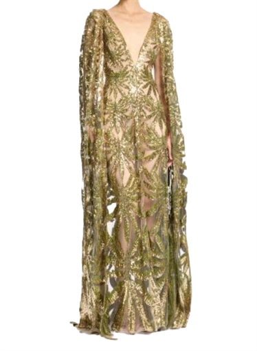 اختارت الفنانة يسرا ارتداء فستاناً لامعاً باللونين الأخضر والذهبي، وتصميمه طويلاً بقصة الكاب الانسيابية ذو تطريزات مبتكرة وثمينة ولامعة من توقيع مصمم الأزياء اللبناني والعالمي إيلي صعب، ويصل سعره إلى 6800 يورو، أي ما يعادل 383 ألف جنيه مصري،